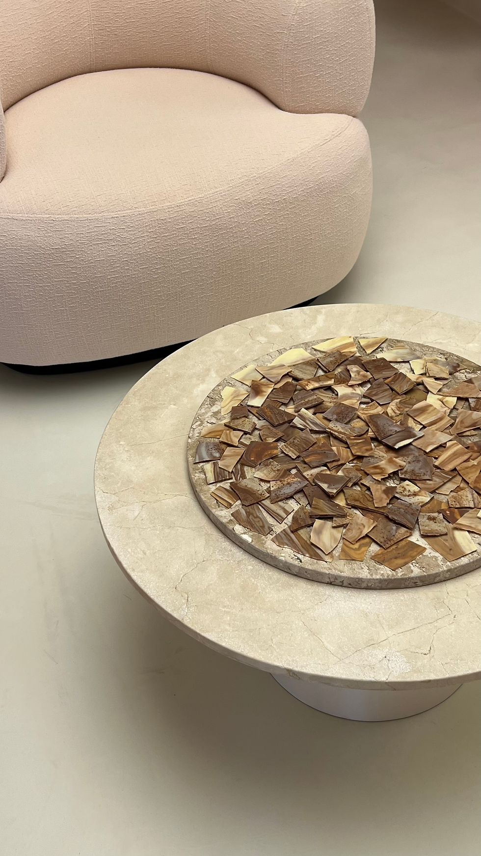 Para a inauguração da loja conceito da Lolitta, criamos uma instalação de doces marmorizados em diálogo com os materiais utilizados no projeto arquitetônico e um coquetel volante inspirado no clima da loja, em tons de nude e preto.